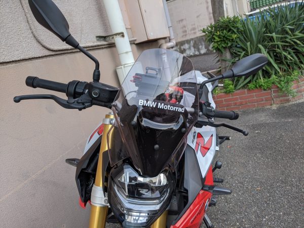 バイクにスクリーンを付けたけど、なんか殺風景なので、BMW Motorradのロゴを貼り付けてみました。ワンポイントで、良い感じかも。