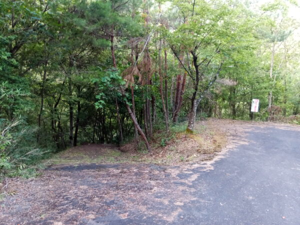 道なりに進むと分岐路がありますが、左側の林道に進むと滝への見学路に入れます。
