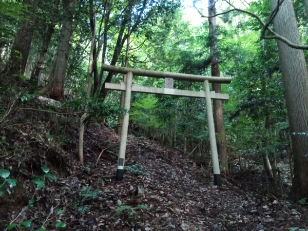 それでは「二ノ滝」に向かいます。ここに「公園案内」にあった鳥居があります。鳥居を越えて山に登って行くと「毘沙門洞」に行けますが、わたしは「二ノ滝」に向かうため右手に行きます。ここからは道が険しく細くなります。