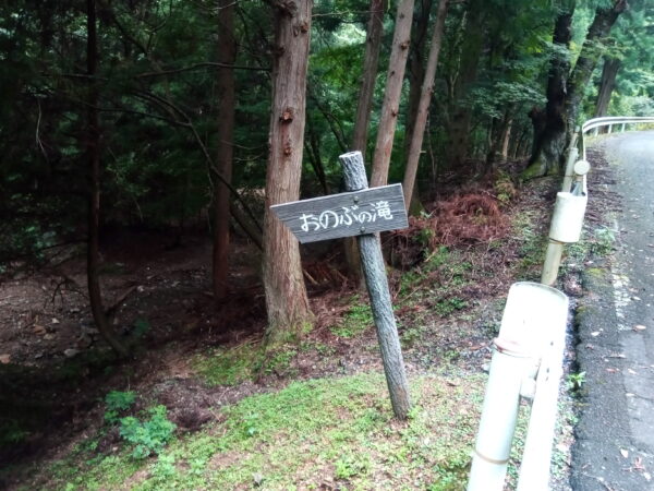 次は「おのぶの滝」です。事前調査では県道301号線に案内看板があるとのことでしたが、その場所がわからず、県道をうろうろしました。グーグルマップの「おのぶの滝」の位置よりかなり山を降った場所にありました。