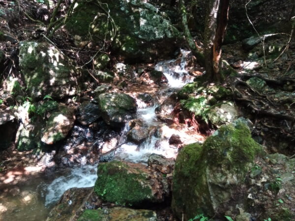 案内看板の所を降りると砂防ダムがあり、そこから川沿いを登っていきます。なかなかの清流ですが、道なき道を進むため観光気分は皆無です。