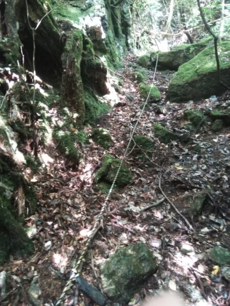 「三ノ滝」に向かいます。いちおう赤いリボンで進路が示されているのですが、時々道がわからなくなります。