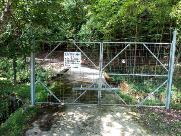 では「俱利伽羅不動の滝」に向かいます。害獣防止フェンスがあるので、開閉して通過します。