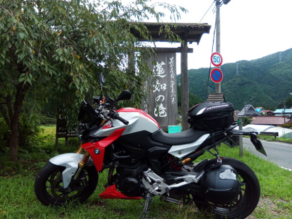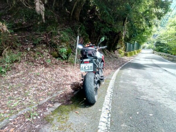 最後は「堂ヶ谷の滝」です。この滝は府道38号線沿いにあるため、楽に見学できます。バイクは道端に駐めています。