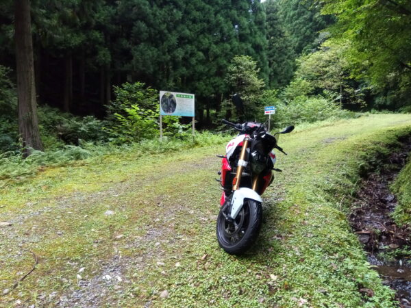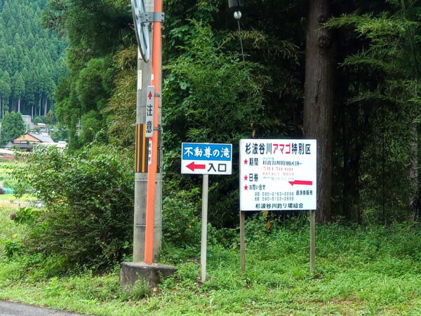 次は「不動尊の滝」に向かいます。事前調査では林道を数キロ走ることになるみたいでした。府道38号線から府道369号線に入って少し走ると案内看板があり、そこを左折して林道に入ります。