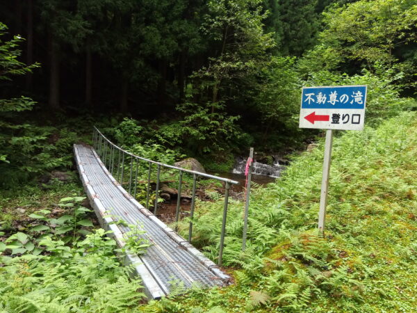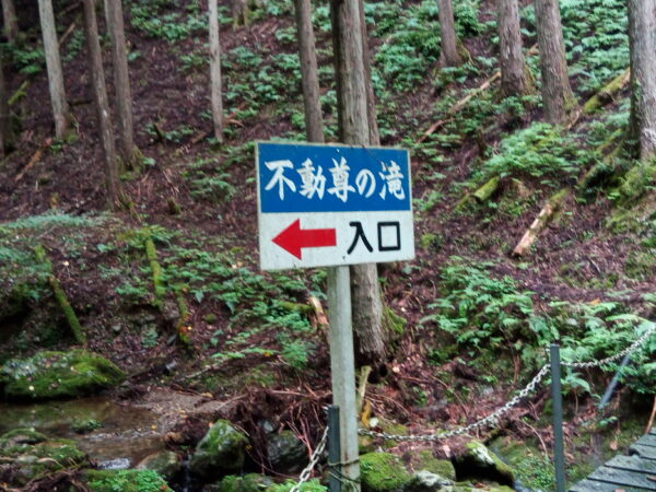 祠から約9分で「不動尊の滝」の入口に到着します。多少の倒木はありますが、道が整備されているので歩きやすいです。