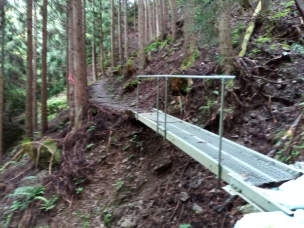 次は「小滝」に向かいます。本当は「雄滝」「雌滝」にも行きたかったのですが、事前調査で倒木と崩落のため立入禁止になっていることがわかっていたため、「小滝」を目的地としました。