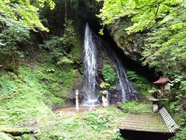 「不動尊の滝」に到着。バイクを駐めた場所から約15分です。ここにも灯籠と祠があります。
