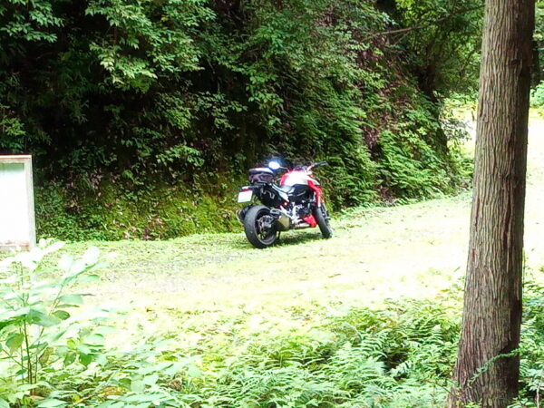こちらを進むと遊歩道より楽にバイクを駐めた場所に帰れました。遊歩道とはいったい・・・。昼食を食べたので、往復で約55分かかりました。