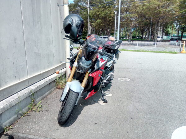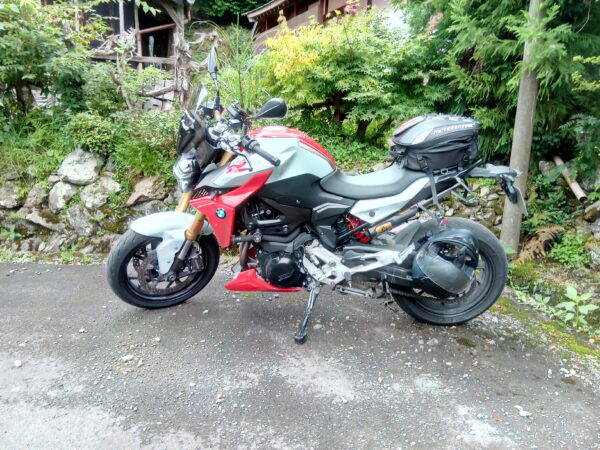 バイクを駐めた場所に戻ってきました。滝までの往復で約33分かかりました。