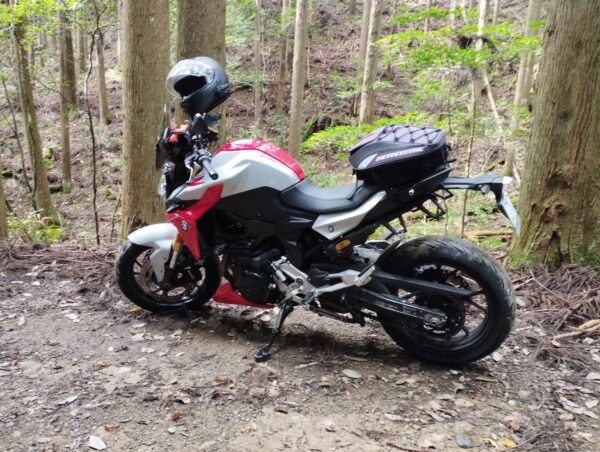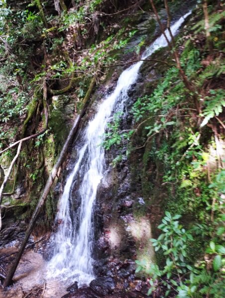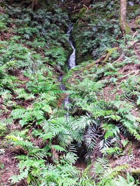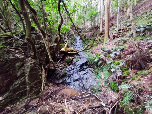 「九鬼谷の滝」に到着。前回(2022/96/29)に見つけ損なったのは、バイクを駐車した場所が既に滝を通り過ぎていたからでした。30mほど通り過ぎていただけなのですが、スマホが圏外で調べられなかったのが敗因でした。
