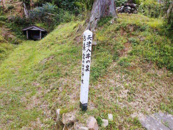 次は「摩氣の滝」に向かいます。「摩氣の滝」は通称で、「摩氣神社」の裏の「胎金寺山」にある「口の天狗杉」の先を左側に回り込んだところにあります。そのため、まずは「摩氣神社」に向かいます。