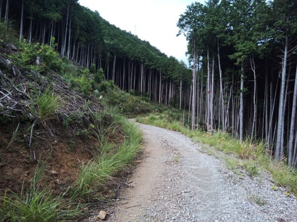 林道を歩いて「松尾山住山登頂口」を目指します。事前調査によるとトレッキングシューズは必須だそうです。