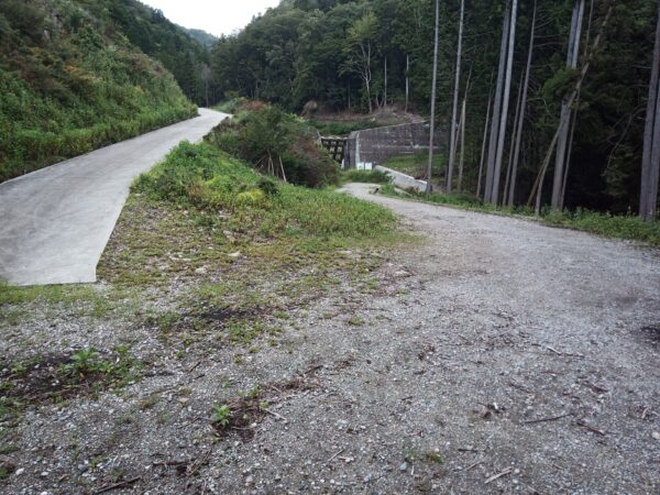 この時は間違いに気づいていないので、林道を歩きます。ブログでは、バイクを駐めた場所から「音羽の滝」まで200mくらいとのことでしたが、下の写真3枚目の正面に砂防ダムが見えるところまで行くのに約12分かかっています。実はこの砂防ダムの右手に人家が見えており、こっちが一番近い場所だったんですね。ブログの道順を辿るのではなく、グーグルマップで一番近い場所を目指した方が良かったみたいです。