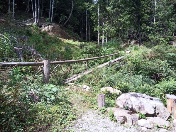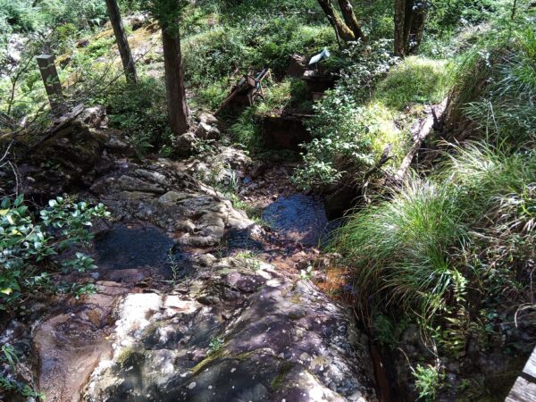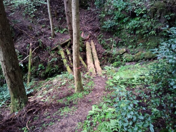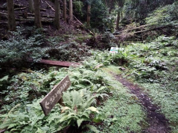 帰りはちゃんと登山道を歩いて戻りました。木を渡しただけの橋で川を渡るなど、意外と楽しめる道でした。「川の上流に行けば滝があるだろう」なんて安直な考えで行動してはいけないと肝に銘じました。