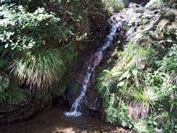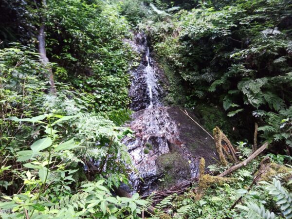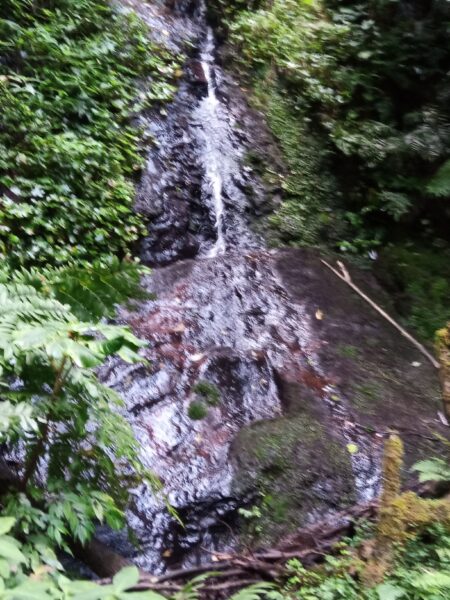 滝から川下を見た景色です。シダ等の雑草が生い茂っていて足下が見えないので、歩くのも大変でした。