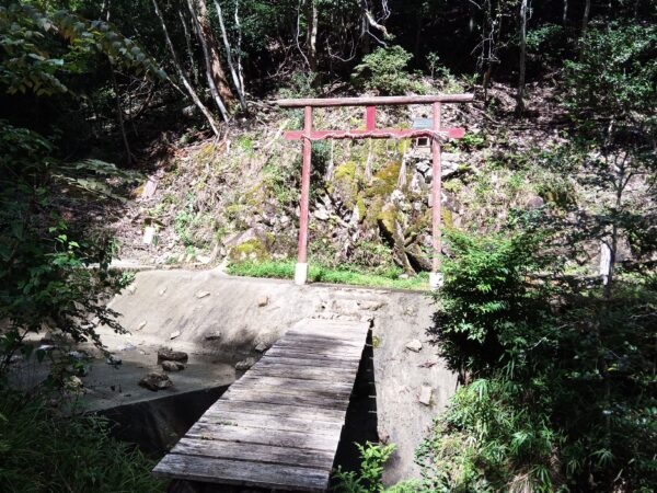 滝の上には鳥居があります。鳥居の手前の木製の橋から滝を見下ろしてみました。