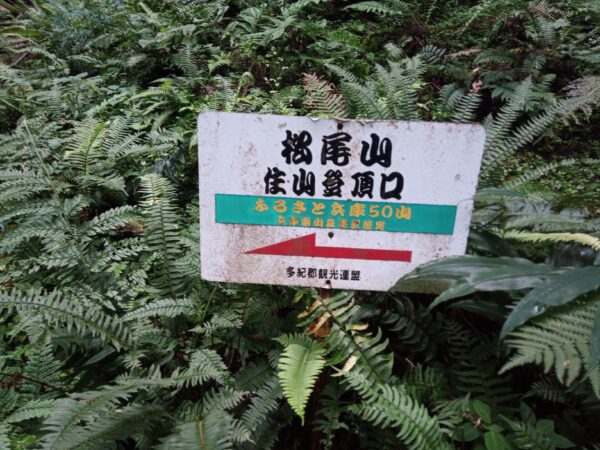 「住山不動滝」方面に走ると「白髭岳」と「松尾山」の分岐点があります。もちろん「松尾山」方面(右手)に向かいますが、道はすぐに林道になります。