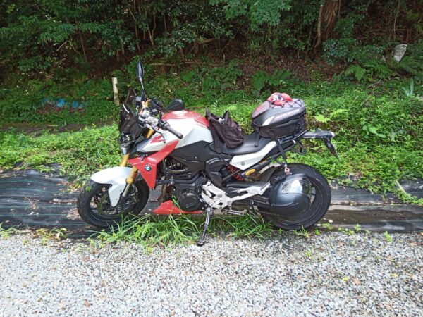 バイクを駐めた場所に戻ってきました。往復で約38分かかりました。最後はお寺の裏山だから楽だと思っていたのですが、今回の滝巡りはかなり山の中を歩くはめになりました。