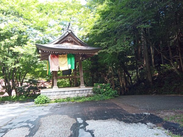 最後は「龍蔵寺」の近くにある「忍の滝」に向かいます。「龍蔵寺」の駐車場があったようなのですが、とりあえず直進して鐘楼のある場所にバイクを駐めました。