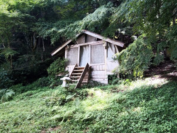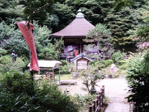 さらに50mほど進むと右手にお堂が見えます。特に案内看板はないのですが、お堂の裏側に不動明王の像があるので、これが「不動堂」で間違いなさそうです。
