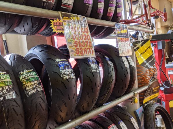 リアタイアだけ新品ではバランスが悪いので、そのまま「ジャパンタイヤセンター箕面店」に直行して、フロントタイヤも交換することにしました・