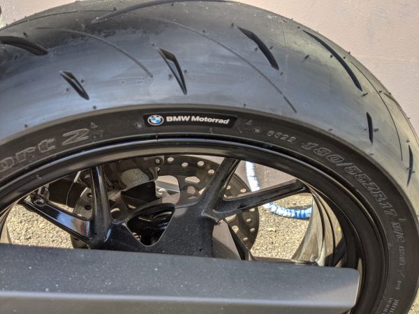 タイヤの側面には「BMW Motorrad」のシールが貼ってあり、OEMタイヤであることがわかります。
