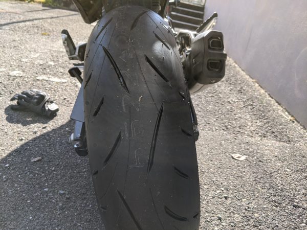 モンスター696ではミシュランのROAD4を履いていたのですが、友人のMさんがPOWER5がなかなか良いと言うので、ROAD5(ROAD4の後継製品)との価格差が1,500円程度でもあるためPOWER5にしました。