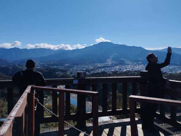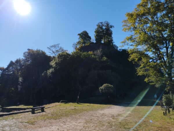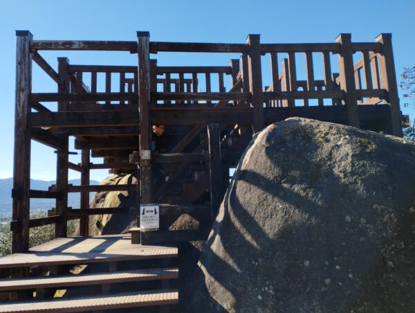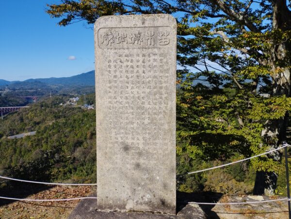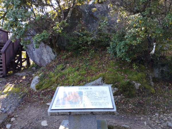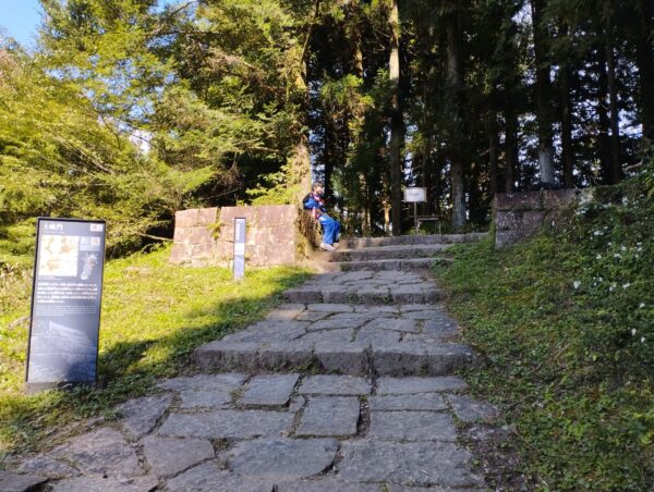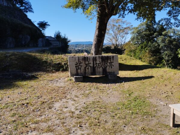 「本丸跡」には石碑と展望台があります。「第一駐車場」から「本丸跡」まで約15分です。