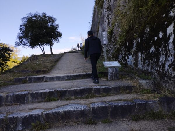「本丸玄関跡」です。ここから「本丸跡」に登っていきます。「本丸跡」も自然石と人工石との組み合わせで造られています。