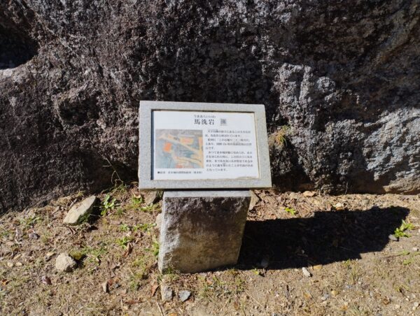 「本丸跡」を降りたところに「馬洗岩」があります。なんでも「苗木城」が攻められて水を切られたときに、この岩の上で馬を米で洗って、水が潤沢であるかのように偽装したそうです。
