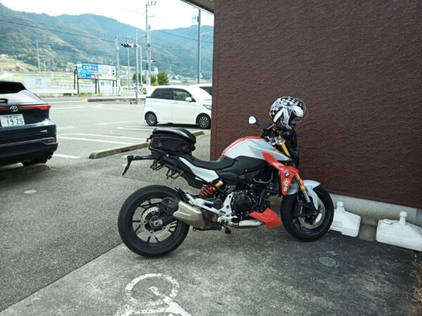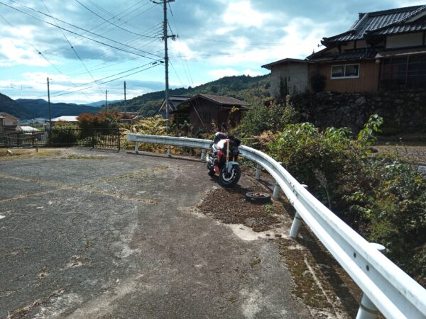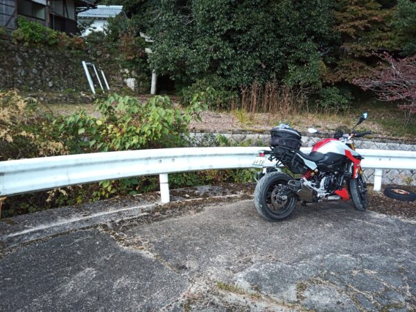 バイクを駐めた場所に戻ってきました。「高山城址」までの往復で約60分かかりました。