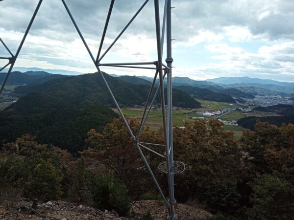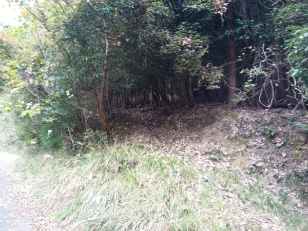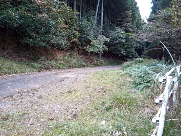 そこで攻城した方のブログを再確認していると、先ほどの「高山城址」の登り口の反対側の山にある送電鉄塔の保守用の道から行けるという記述がありました。「え、移動しなくて良かったじゃん」と思いましたが、徒歩で先ほどの登り口に向かいました。