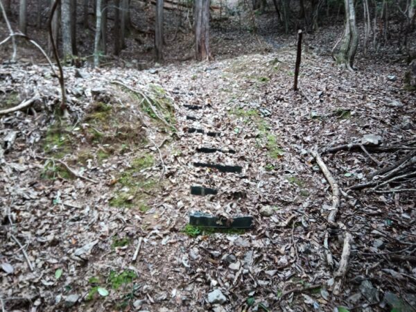 送電鉄塔の保守用の道を登ります。2021年11月に「宇津城址」に行ったときも、送電鉄塔の保守用の道を登りましたね。今回の保守用の道もプラスティックの箱のようなもので階段が造られていました。