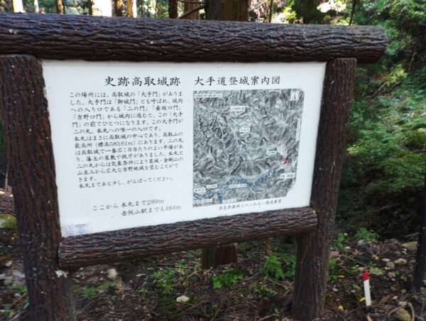 「高取城址」の入口に到着。「第2観光駐車場」から約1時間15分かかりました。