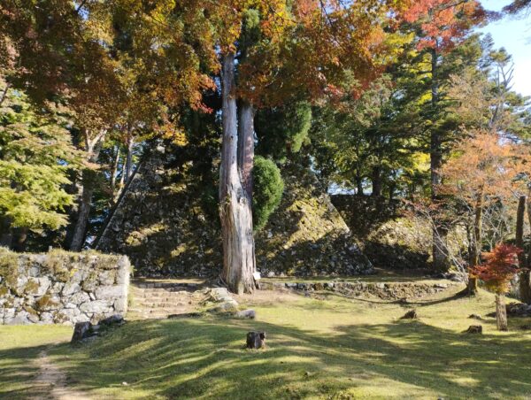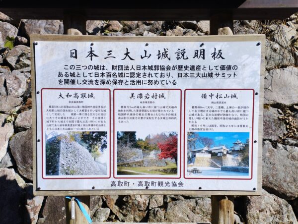 「十三間多門跡」を抜けると立派な石垣があり、「日本三大山城」の説明看板がありました。