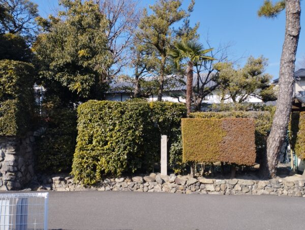 お屋敷の外観と城跡碑です。説明看板等はありません。この城跡碑は「芥川城址」が、まだ「芥川山城址」と呼ばれていた頃に建てられたのだと思われます。