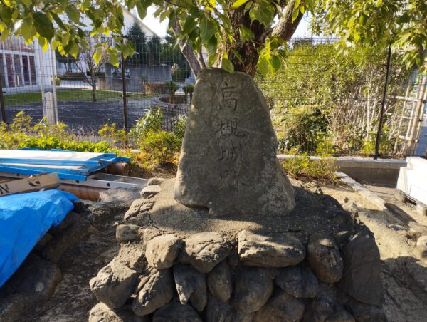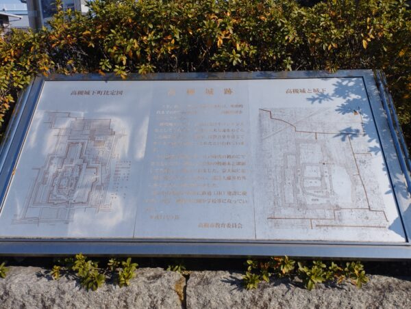 「高槻城址」の説明看板と城跡碑です。城跡碑は「高槻城公園」内にあると思い込んでいたため、探すのに少し手間取りました。
