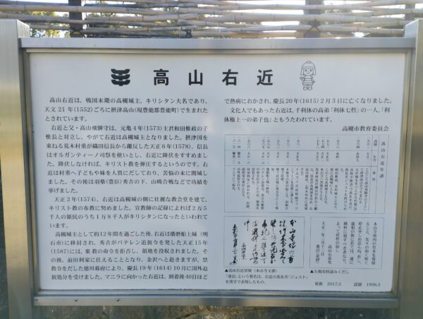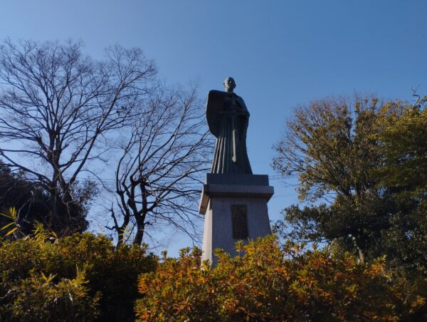 「高槻城」の城主だった「高山右近」の像です。この日は抜けるような青空で暖かかったです。