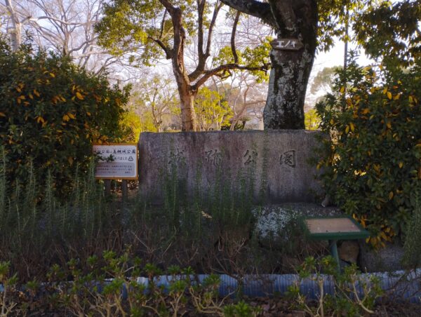 「高槻城公園」です。「城跡公園」と書いてありますが、横に「高槻城公園」に名称が変わりました、という説明看板が横に立っています。「高槻城公園」にも新しい城跡碑がありました。