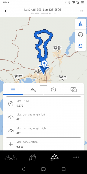 天気は曇りでしたが、気温は上々で、良い感じで走れました。そして左バンク角がついに48度にw 右バンク角も46度なので、フロントタイヤの「あまリング(タイヤの端っこの未接地部分)」を消す日も近いかも。