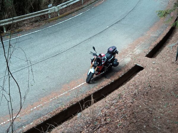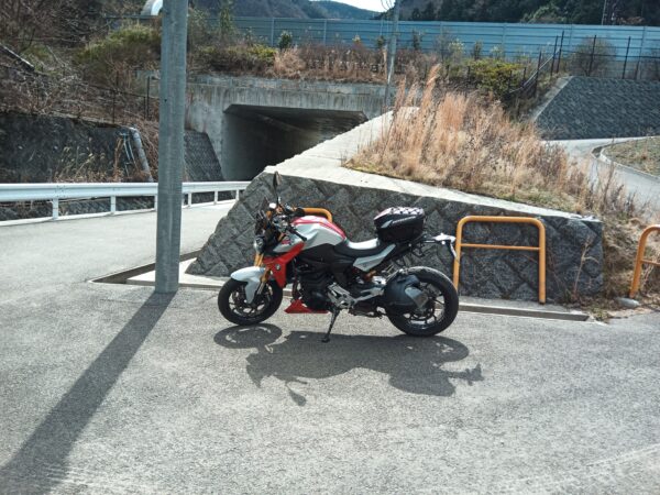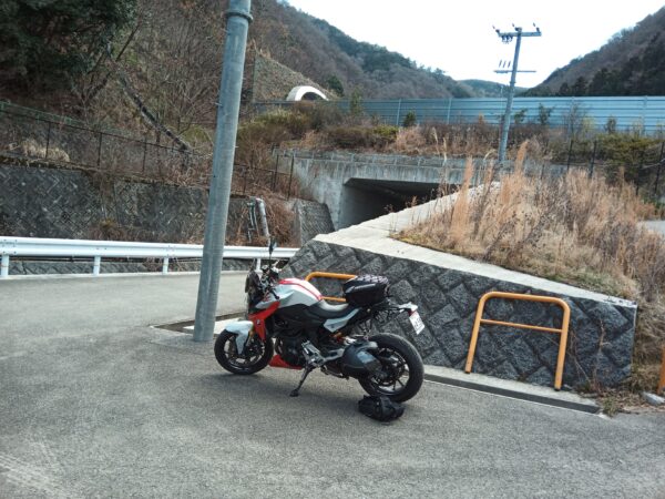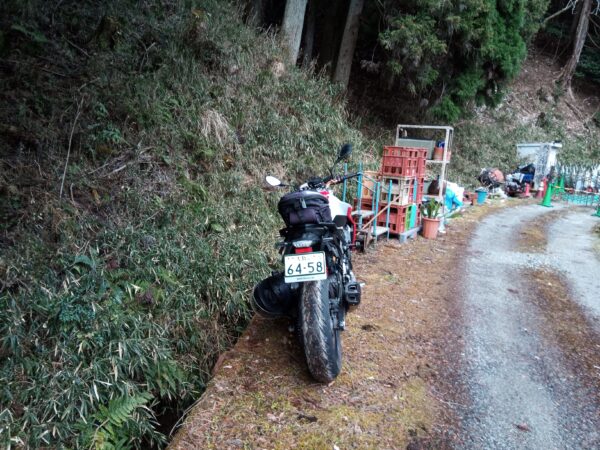 再び「堀切」を通過して下山し、バイクを駐めた場所に戻りました。往復に約18分かかりました。