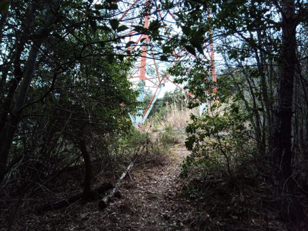 送電鉄塔を突っ切って、尾根沿いに進みます。多少のアップダウンや方向転換はありますが、尾根沿いに進めば大丈夫です。