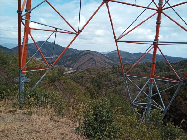 わたしはバイクの左手が城山だと思っていたのですが、反対側の山でした。資材置き場で作業をしていたおじさんが教えてくれました。