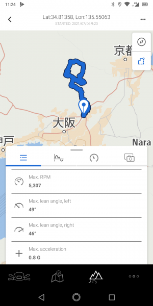 それでも下りの左コーナーでバンク角49度が出ていました。地面へのめり込み防止のためにサイドスタンドに赤い補助プレートを着けているのですが、それがガリガリッて擦っていましたw