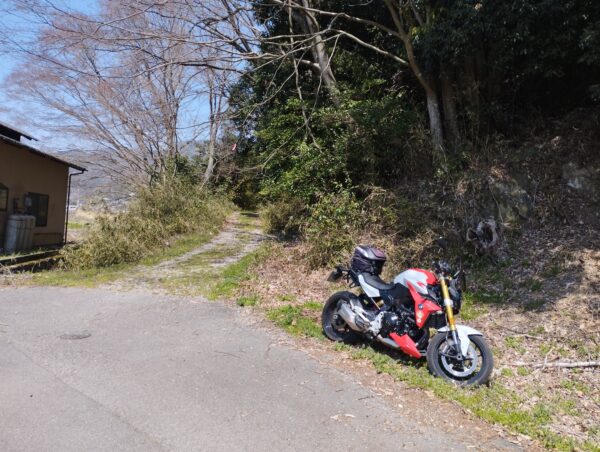 次は「吉村城址」に向かいます。この城址も山を直登りするのですが、直登地点の情報などが、攻城された方のブログに写真入りで紹介されていました。バイクは直登地点へ向かう林道の入口に駐めました。