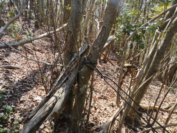 もうお昼も過ぎていたので、城址で昼食をいただきました。帰り道はケーブルに沿って降りることにしました。城址の周りでは「堀切跡」と思われる場所もありました。