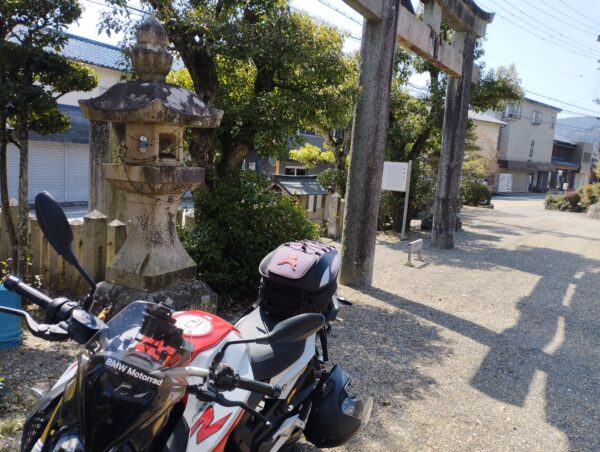 バイクは起点となる「岐尼(きね)神社」に駐めました。「岐尼神社」から登り、「今西城址」、「森上城址」を経て「少林寺」に降り、府道602号線を歩いて「岐尼神社」に戻るコースです。
