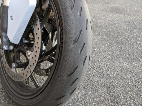 タイトなカーブで少しフロントタイヤが滑ったような感触があったので、タイヤの状態を確認してみました。(滑ったのは、たぶん気のせいだと思うけどw)