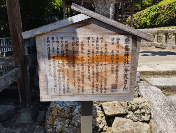 「生見天満宮」の境内には、いくつか社があるのですが、これは「厳島神社」です。広島にある海に鳥居が建っている神社と同じ名前ですね。弁天様が祀られているそうで、女性がお参りすると美人になるそうです。
